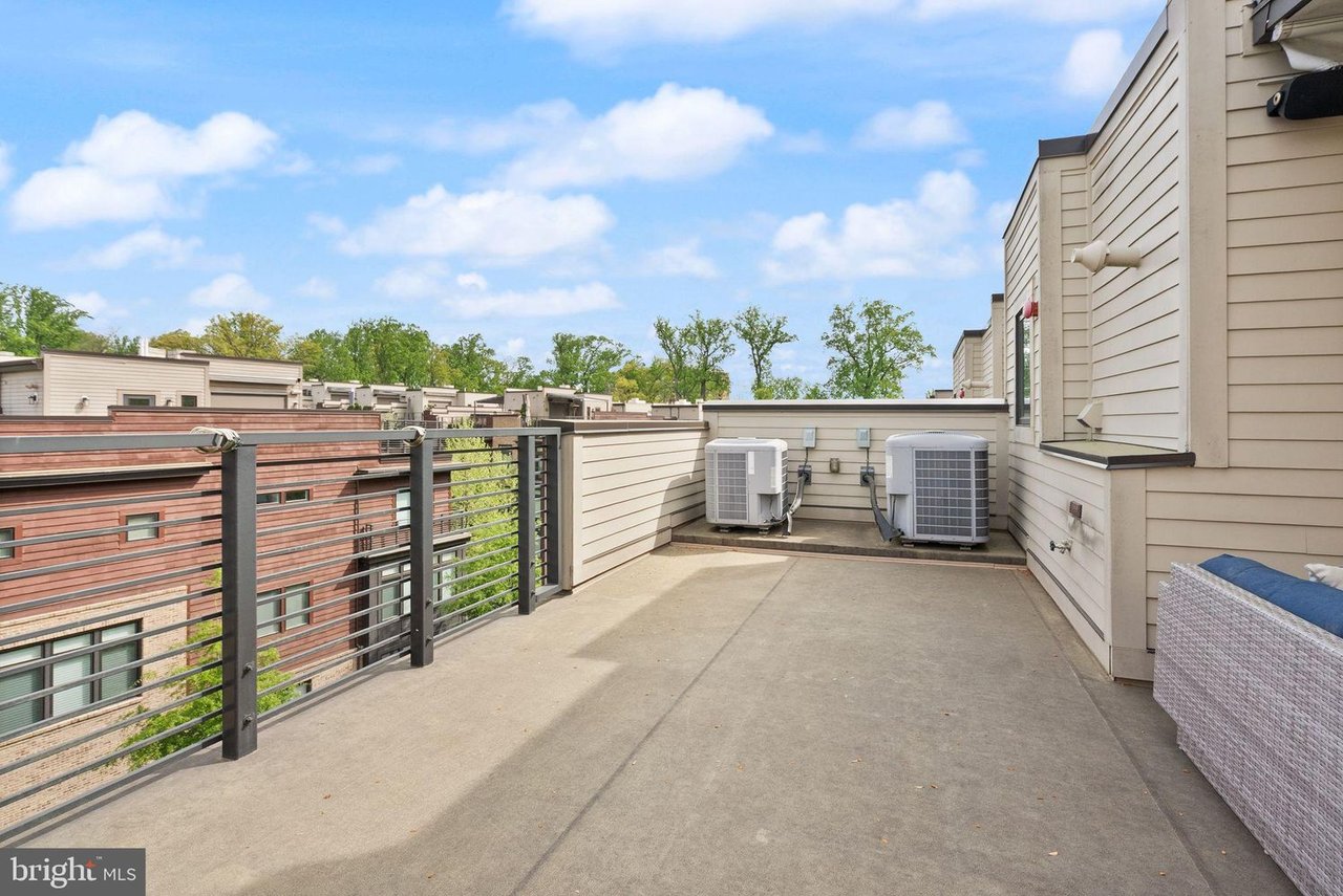 The rooftop terrace crowns the home with the ultimate outdoor retreat—boasting a retractable awning, outdoor speakers, mounted TV, refrigerator, and wet bar—perfect for both large gatherings and private evenings under the stars.